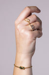 Ein Statement in Grün: Das goldene Armband mit drei Malachiten strahlt natürliche Eleganz und Stärke aus. Ideal, um Alltagslooks einen Hauch von Tiefe und Charakter zu verleihen.