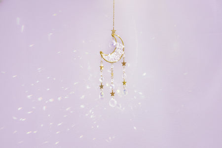 Our suncatchers combine sparkling glass with genuine gemstones such as amethyst, rose quartz, agate, and many more. They bring magic, harmony, and vibrant colors into your home.